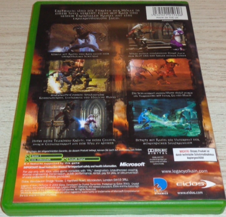 Kämpfe mit Raziel und Kain gegen dein unerbittliches Schicksal. Stille deinen unbändigen Durst nach dem Blut und den Seelen deiner Feinde. Nutze deine Telekinese-Kräfte, um deine Gegner durch Gedankenkraft aus dem Weg zu räumen. Die Schlagkraft deiner Waffe steigt durch die Verbindung mit Feuer, Eis und Magie. Air Fatality Combos: Spektakuläre Komboangriffe, Luftkämpfe und tödliche Moves. Betrete mit Raziel die Unterwelt der mörderischen Spektralwesen.
