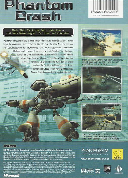 In Phantom Crash siedelt die japanische Regierung aufgrund massiver Luftverschmutzung und anhaltender wirtschaftlicher Verluste die gesamte Hauptstadt im Jahre 2025 nach "Neo Tokyo" um, einer futuristischen Kuppelstadt im tokyoter Hafen. Einige Jahre später wird das verlassene Alt-Tokyo zum Schlachtfeld für Rumbling-Wettkämpfe. Die Kontrahenten dieser tödlichen Schlachten treten in so genannten "Scoobees", extrem wendigen und gepanzerten Fahrzeugen gegeneinander an. Das Ziel: Ruhm und Ehre durch Vernichtung der Gegner. Im Jahre 2031 ist Rumbling zum größten Unterhaltungshit aller Zeiten aufgestiegen. Kraftprobe in Shinjuku: virtueller Kampf in einer wirklichen Stadt. Tokyos Shinjuku Bezirk, minuziös detailliert nachempfunden in brillanter 3D-Grafik, hallt mit dem brachialen Gebrüll von Vulkankanonen wider. Schaufenster zerbersten und Wände werden mit Einschusslöchern überseht. Die adrenalingeladene Kampf- und Zerstörungsaction in dieser realistischen Umgebung sind ein Fest für jeden Action-Shooter-Fan.